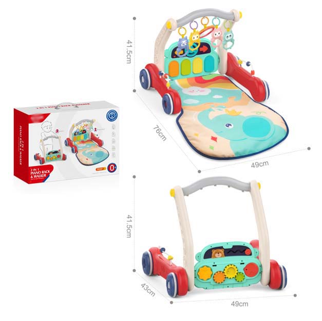 3 in 1 Baby Gym Play Mat, Baby Activity Play Mat with Play Piano, Baby Learning Walkers & Tummy Time Mat for for 0-24 Months Infant