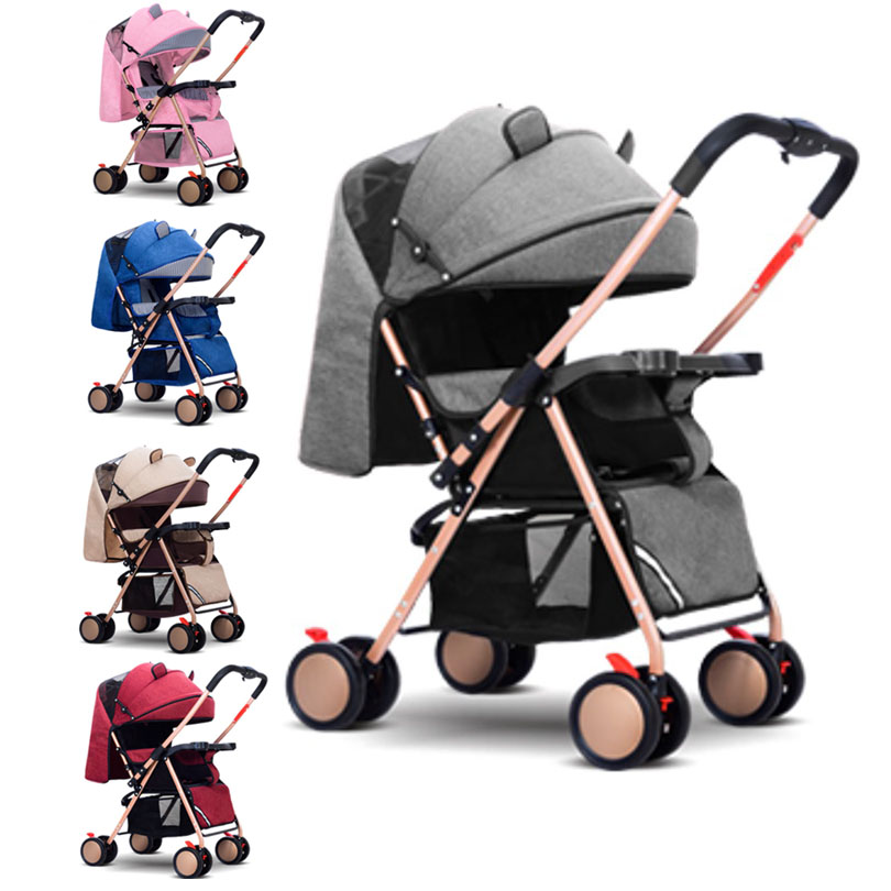 Foldable Baby Stroller for Babies and Toddlers, with Food Tray, Big Bottom Basket, Reversible Push Handle