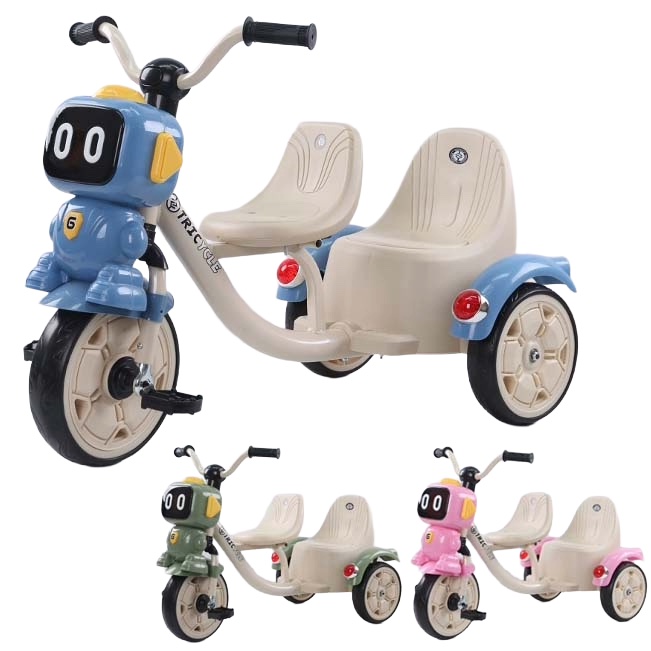 2 Seat Kids Tricycle – Double Trike for 2 Kids –Kids 2 Seater Trike – Double Toddler Tricycle, Cartoon Design, Cartoon Toy with Music and Lights, Stable 3-wheel structure, Simple & Easy to Use, Comfortable Seating for Both Riders, Designed for Two Kids.