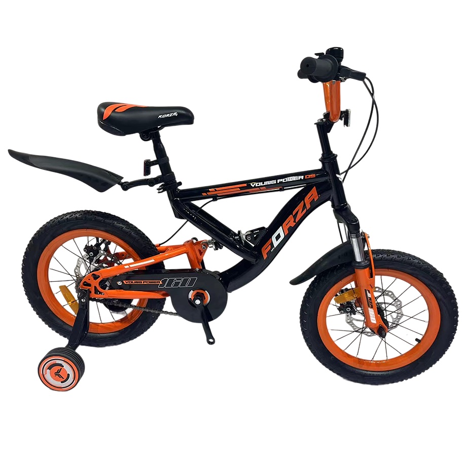 Frame and fork: steel 1.0mm, suspension frame, brake: disc brake; tyre: 2.125″inflatable air tyre; rim: steel, training wheels.